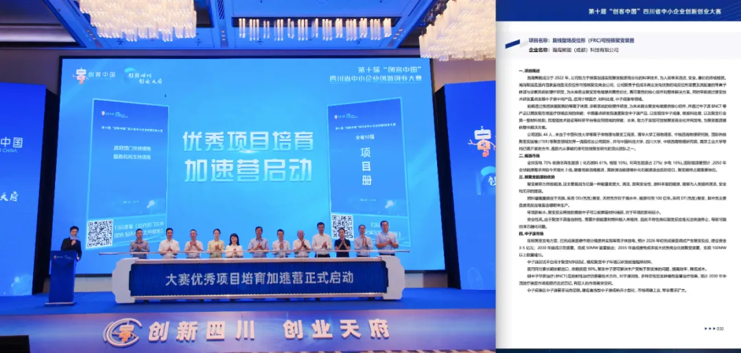 Additionally, at the finals venue, the Acceleration Camp for Outstanding Projects from the 10th “Maker China” Sichuan Provincial SME Innovation and Entrepreneurship Competition was officially launched. Focusing on critical stages of project development, the Acceleration Camp features 10 targeted support policies jointly introduced by the Department of Economy and Information Technology and the Department of Finance, in collaboration with multiple departments. These policies cover six key areas: financial incentives, priority cultivation, financial support, public services, industrial chain integration, and promotional outreach. Awards reach up to 1 million yuan, with outstanding projects gaining direct eligibility for the national “Little Giant” program for specialized, refined, distinctive, and innovative enterprises. HHMAX-ENERGY's “Linear Field Reverse Configuration (FRC) Controllable Nuclear Fusion Device” was selected as an outstanding project in this competition and included in the province's Top 50 Projects Catalog. It will receive focused cultivation and additional policy support.